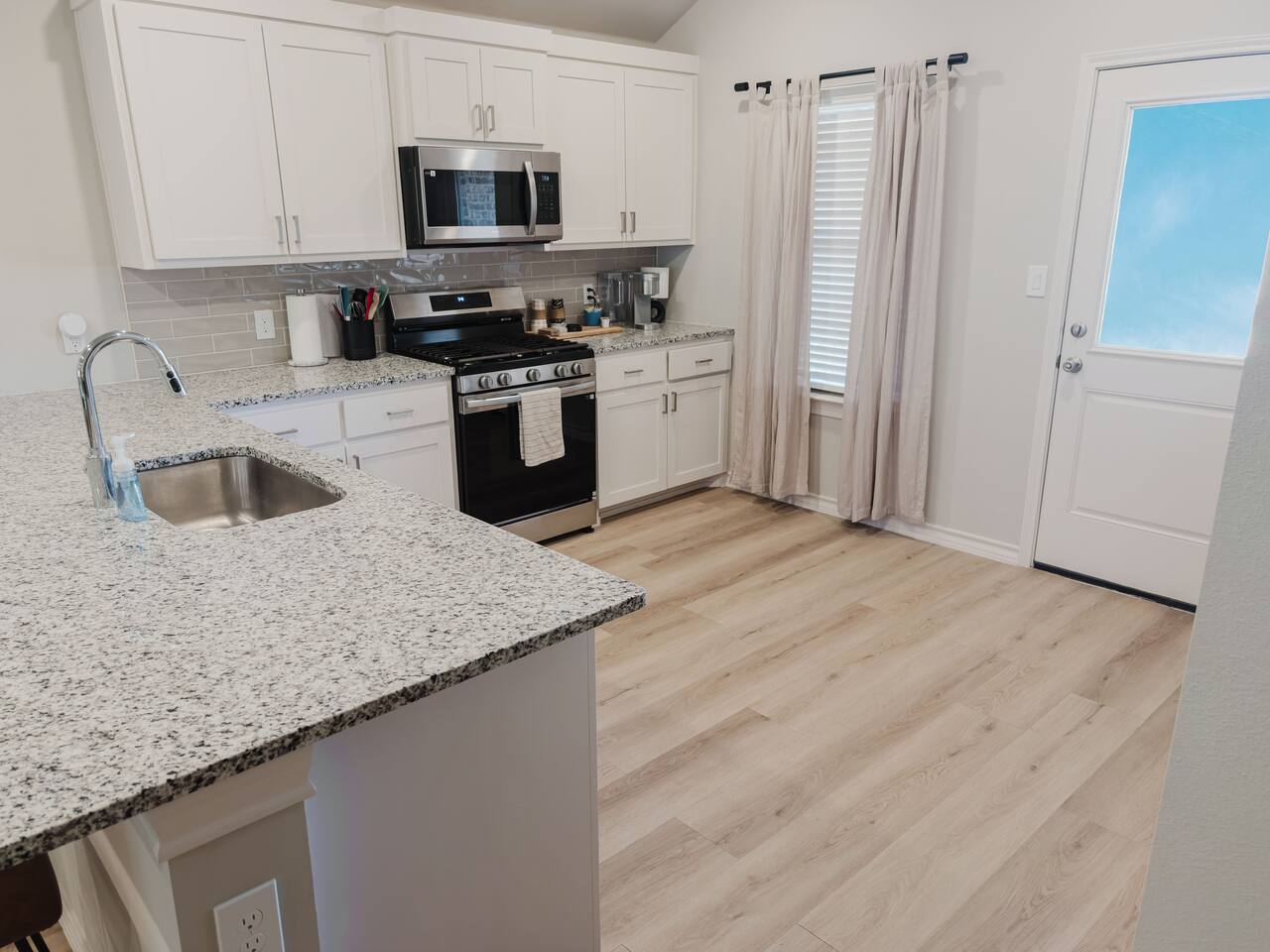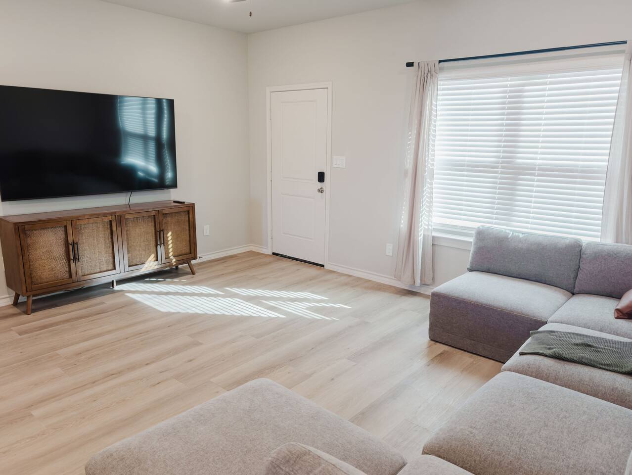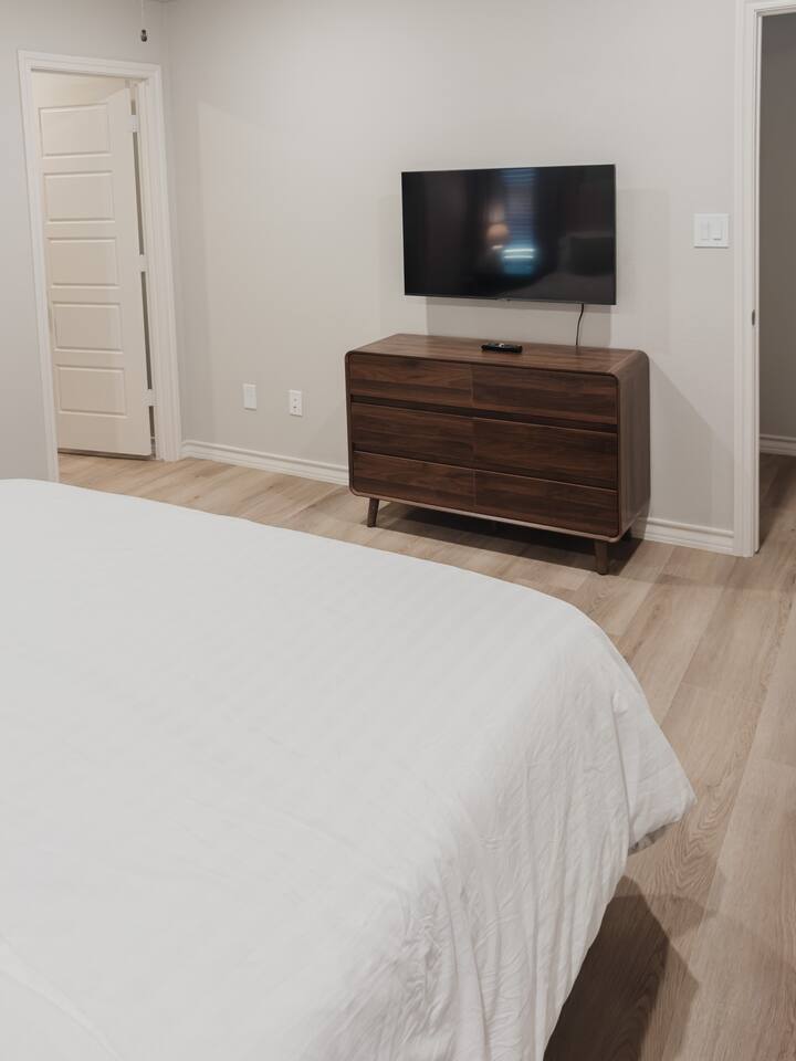 We're thrilled to welcome you to our stunning, newly built townhouse located at 7004 26th Street in Lubbock, TX. Whether you're here for work, visiting Texas Tech, or simply looking for a comfortable place to call home for a while, this 3-bedroom, 2-bathroom gem has you covered. Gather together in the spacious open-concept living, dining, and kitchen area — the true centerpiece of the home. Kick back on the plush sofa and catch your favorite shows or movies on the massive 85" 4K Smart TV. The fully equipped kitchen makes cooking a breeze, featuring a refrigerator, stove, oven, dishwasher, and a Keurig coffee maker with all the essentials ready to go. When it's time to wind down, each of the three bedrooms offers a peaceful retreat with premium 5-star linens and a 4K Smart TV to keep you entertained. Master Bedroom: Your own private escape featuring a luxurious king-size bed, premium foam mattress, 42" 4K Smart TV, walk-in closet, and a private ensuite bathroom. Bedroom 2: A comfortable and relaxing space with a plush queen-size bed, luxury foam mattress, and a 45" 4K Smart TV. Bedroom 3: A great space for those needing to get work done, featuring a full-size bed, luxury foam mattress, 45" 4K Smart TV, and a dedicated desk workspace. Head out to your private, fully enclosed backyard for some fresh air and relaxation. We love pets! Dogs are welcome depending on size — just let us know in advance to ensure a smooth stay. An additional cleaning fee applies per pet: 1-4 Nights: $30 per night Guest access Guests have private access to the townhouse, including all 3 bedrooms, the open living and dining area, bathrooms, stacked washer and dryer, and the private backyard. Entry is simple and secure with a keyless lock — your unique code will be provided the week prior to your arrival. Please note the garage is not accessible to guests. Everything you need is at your fingertips: Private entrance with keyless entry High-speed Wi-Fi (up to 1Gbps) Central air conditioning and heating Full-size washer and dryer 4K Smart TVs with YouTubeTV and Netflix in every room Fully stocked kitchen with all necessary cookware, kitchenware and silverware Other things to note Health & Safety: Your wellbeing comes first. Our professional cleaning crew fully sanitizes the home between every stay, and an air purifier is on hand for added comfort. Starter Supplies: We've got you covered from the moment you arrive — snacks, drinks, and essential toiletries are all stocked and ready for you. Other Listings: Can't get these dates? Check out our other listings in the city! This home truly has the comforts of home — from snacks and drinks to shampoo and books. The kitchen is fully set up for cooking, the beds are cloud-like, and the private backyard is the perfect place to unwind. Pet Friendly & AIR PURIFIER included. Distance from 7004 26th Street to: Covenant Medical Center - 3 miles UMC Hospital - 3.2 miles Texas Tech - 3.4 miles Jones AT&T Stadium - 3.6 miles Lubbock Memorial Civic Center - 5.1 miles Starbucks Coffee - 1.5 miles Costco - 1.5 miles