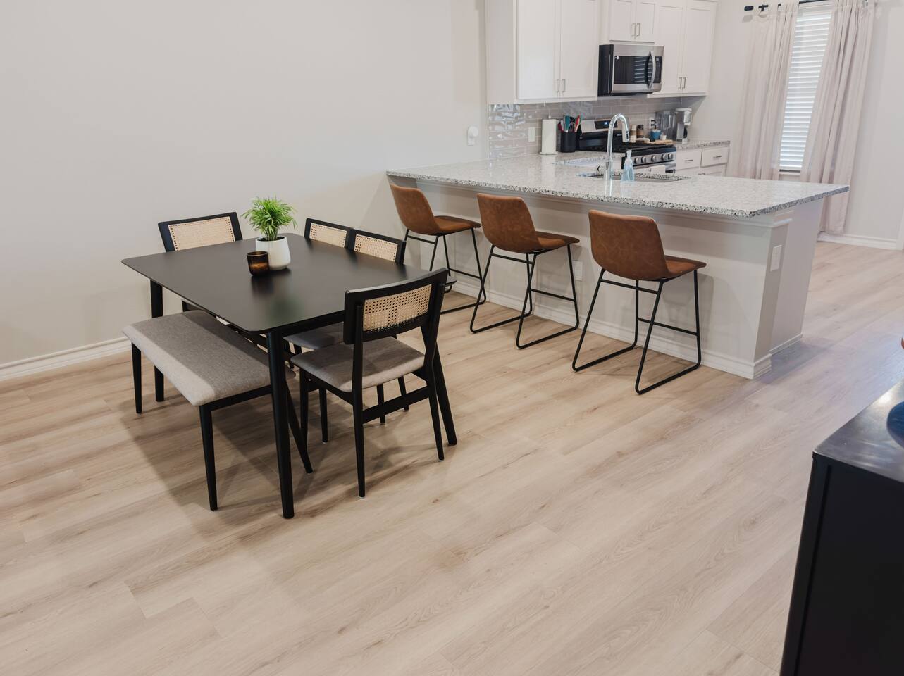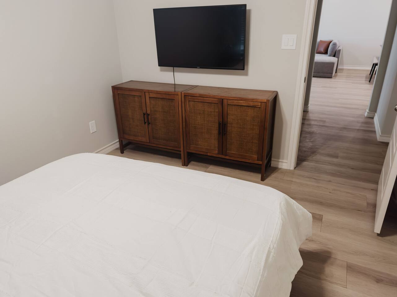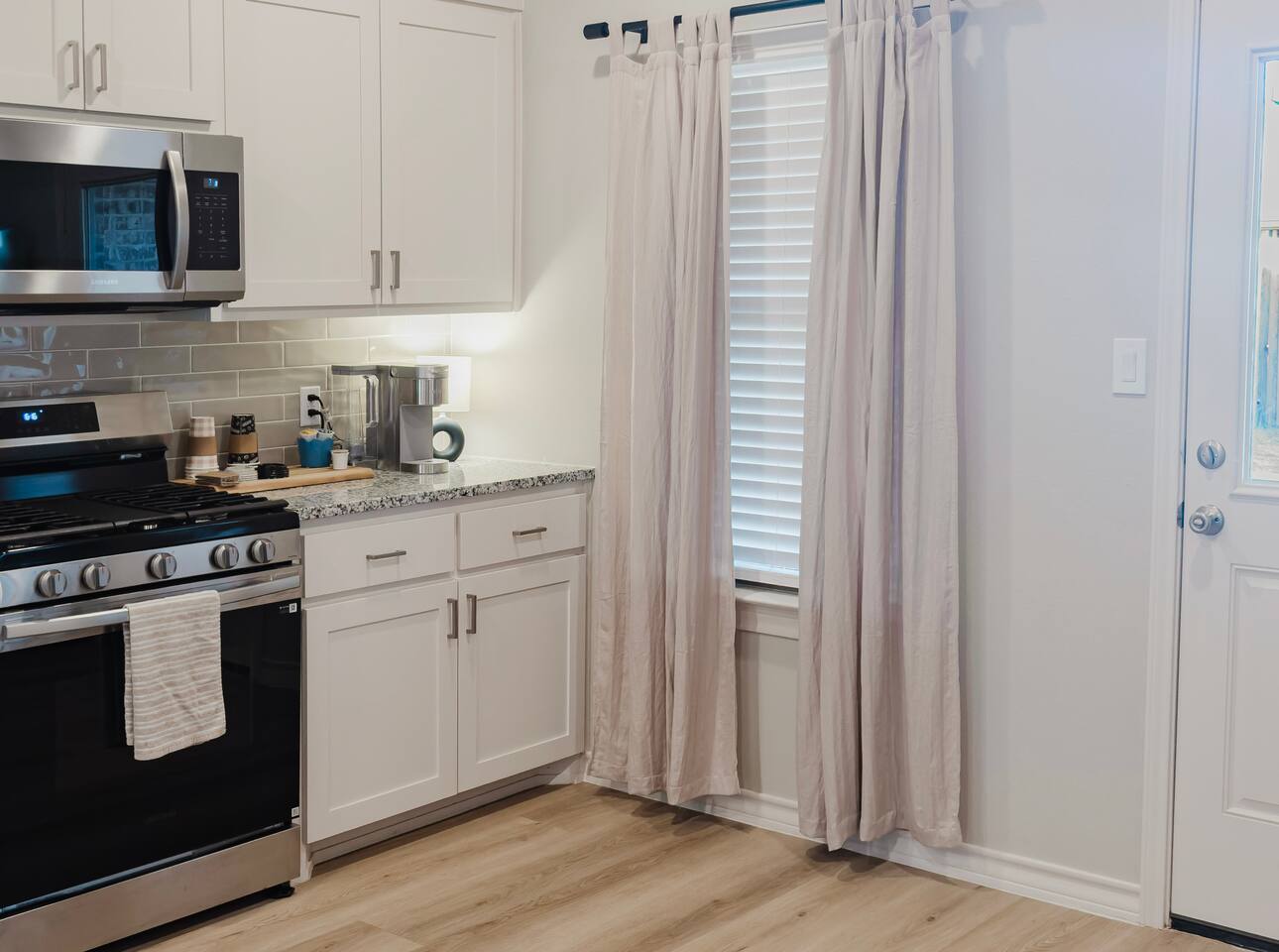 We're thrilled to welcome you to our stunning, newly built townhouse located at 7004 26th Street in Lubbock, TX. Whether you're here for work, visiting Texas Tech, or simply looking for a comfortable place to call home for a while, this 3-bedroom, 2-bathroom gem has you covered. Gather together in the spacious open-concept living, dining, and kitchen area — the true centerpiece of the home. Kick back on the plush sofa and catch your favorite shows or movies on the massive 85" 4K Smart TV. The fully equipped kitchen makes cooking a breeze, featuring a refrigerator, stove, oven, dishwasher, and a Keurig coffee maker with all the essentials ready to go. When it's time to wind down, each of the three bedrooms offers a peaceful retreat with premium 5-star linens and a 4K Smart TV to keep you entertained. Master Bedroom: Your own private escape featuring a luxurious king-size bed, premium foam mattress, 42" 4K Smart TV, walk-in closet, and a private ensuite bathroom. Bedroom 2: A comfortable and relaxing space with a plush queen-size bed, luxury foam mattress, and a 45" 4K Smart TV. Bedroom 3: A great space for those needing to get work done, featuring a full-size bed, luxury foam mattress, 45" 4K Smart TV, and a dedicated desk workspace. Head out to your private, fully enclosed backyard for some fresh air and relaxation. We love pets! Dogs are welcome depending on size — just let us know in advance to ensure a smooth stay. An additional cleaning fee applies per pet: 1-4 Nights: $30 per night Guest access Guests have private access to the townhouse, including all 3 bedrooms, the open living and dining area, bathrooms, stacked washer and dryer, and the private backyard. Entry is simple and secure with a keyless lock — your unique code will be provided the week prior to your arrival. Please note the garage is not accessible to guests. Everything you need is at your fingertips: Private entrance with keyless entry High-speed Wi-Fi (up to 1Gbps) Central air conditioning and heating Full-size washer and dryer 4K Smart TVs with YouTubeTV and Netflix in every room Fully stocked kitchen with all necessary cookware, kitchenware and silverware Other things to note Health & Safety: Your wellbeing comes first. Our professional cleaning crew fully sanitizes the home between every stay, and an air purifier is on hand for added comfort. Starter Supplies: We've got you covered from the moment you arrive — snacks, drinks, and essential toiletries are all stocked and ready for you. Other Listings: Can't get these dates? Check out our other listings in the city! This home truly has the comforts of home — from snacks and drinks to shampoo and books. The kitchen is fully set up for cooking, the beds are cloud-like, and the private backyard is the perfect place to unwind. Pet Friendly & AIR PURIFIER included. Distance from 7004 26th Street to: Covenant Medical Center - 3 miles UMC Hospital - 3.2 miles Texas Tech - 3.4 miles Jones AT&T Stadium - 3.6 miles Lubbock Memorial Civic Center - 5.1 miles Starbucks Coffee - 1.5 miles Costco - 1.5 miles